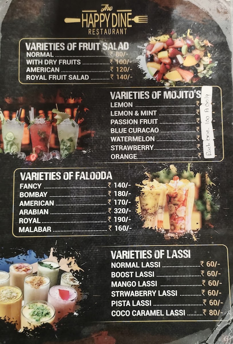 The Happy Dine Restaurant Menu